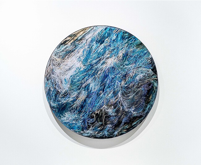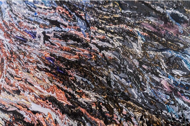 一方、高山は1990年山口県出身。2016年に東京造形大学大学院 造形研究科美術専攻領域を修了。アクリル絵の具を流れる粒子のように物質的な状態として扱い、積層して彫刻刀やカッターの刃などを用いて 削り出すなど、 平面を主な媒体としながら、触覚的あるいは彫刻的ともいえる手法を用いて制作をしています。