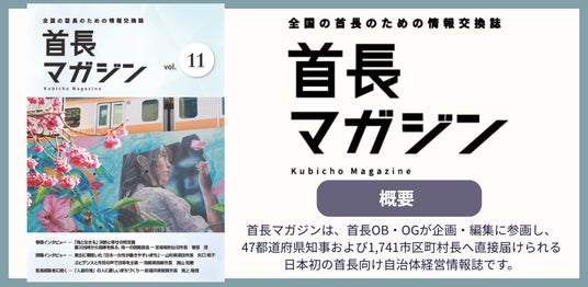 『首長マガジン』は、47都道府県知事および1,741市区町村長へ直接届けられる日本初の首長向け自治体経営情報誌です。自治体経営を知り尽くした首長OB・OGが企画・編集に参画する唯一無二の体制を構築しており、首長の関心事に特化した独自取材により、高い読者満足度・精読率をほこります。従来の営業活動では困難だった首長への直接アプローチを可能にする官民連携のプラットフォームとして、自治体と企業が共に地域課題へ挑むための接点構築を支援しています。