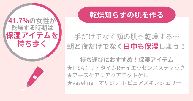 ・41.7%の女性が乾燥する時期に保湿アイテムを持ち歩く
