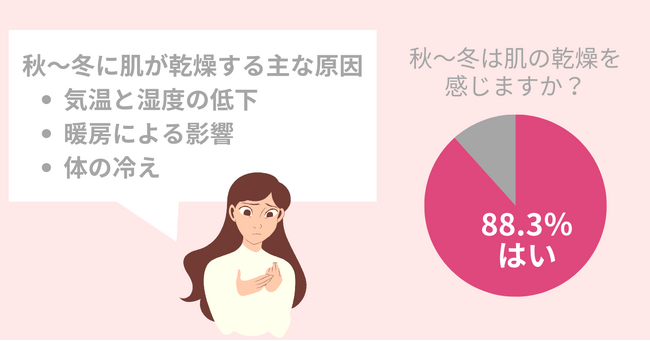 ・88.3%の女性が秋~冬に肌の乾燥を感じる