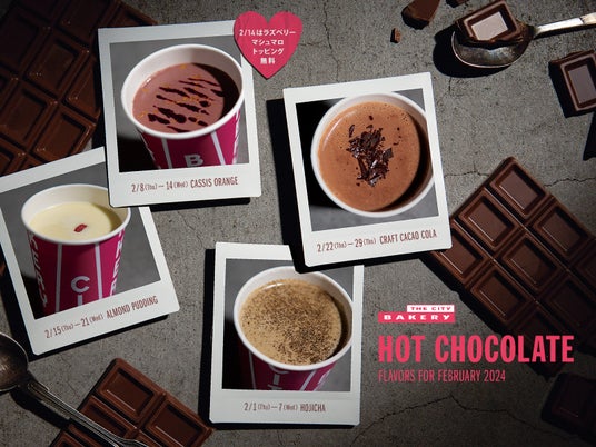 寒さ厳しい2月のNY。ホットチョコレートで心も身体も温まって欲しいという想いで1992年からスタートした「HOT CHOCOLATE FESTIVAL」は、THE CITY BAKERY にとって毎年恒例の特別なイベントです。日本でも2013年より開催が始まり、毎年2月の1か月間は、週替わりでこの時期だけの期間限定フレーバーをご用意し、皆さまのご来店をお待ちしております。