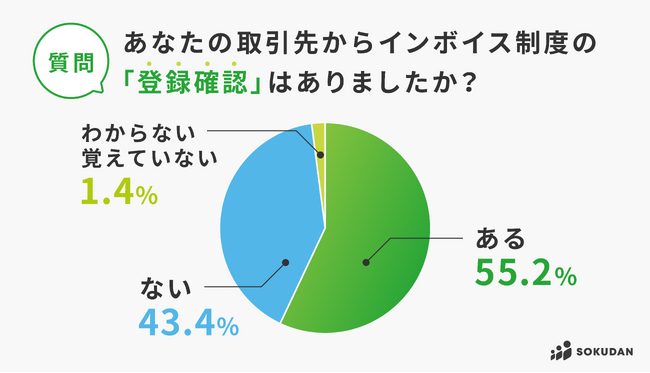 → 55%と半数以上が取引先からの登録確認を受けるも未登録