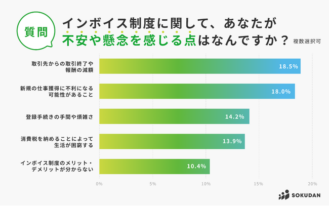 「取引先からの取引終了や報酬の減額」18.5%と「新規の仕事の獲得に不利になる可能性があること」18.0%が上位2つを占めることから、新規や既存の取引に不安や懸念があることがわかる結果となりました。