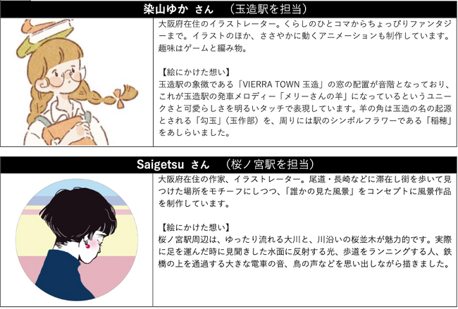 第1弾・第2弾・第3弾に引き続き、オリジナルNFT駅スタンプの製作には、関西にゆかりのあるイラストレーター・アーティストにデザインをお願いし、この企画だけのオリジナル駅スタンプに仕上げています。
