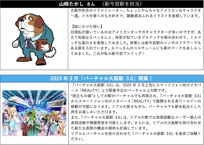また特別編として、JR西日本が2024年3月に開業する「バーチャル大阪駅 3.0」※2※3にもNFT駅スタンプを設置します。バーチャル上で「NFT駅スタンプ」が獲得できるといった、リアルとバーチャルを掛け合わせた新たなスタンプラリー体験を提供します。