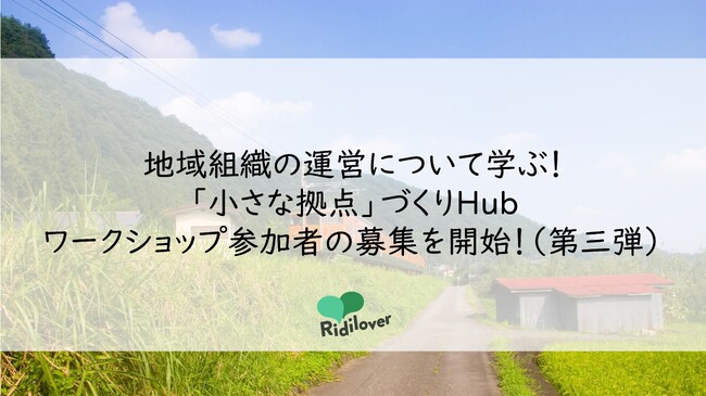 小さな拠点づくり、地域運営組織等を主題に、ワークショップ(以下、WS)を実施、各テーマそれぞれ4回のWSを実施いたします。