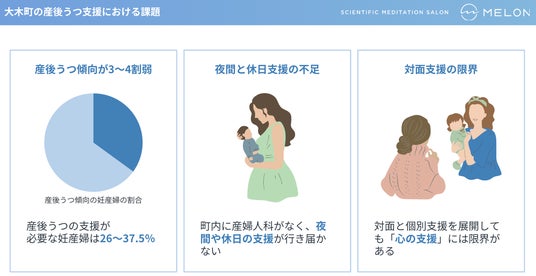 マインドフルネスを応用して人・組織の「心と感情の課題」解決を支援する株式会社Melon(本社:東京都港区、代表取締役CEO:橋本大佑、以下「MELON」)は、福岡県大木町と連携し、大木町の妊産婦を対象とした産後うつの予防・改善および産前産後のメンタルヘルス支援を行うプログラムを、2025年4月より開始したことをお知らせいたします。MELONのプログラムを自治体と協働で提供するのは、全国で初めてです。