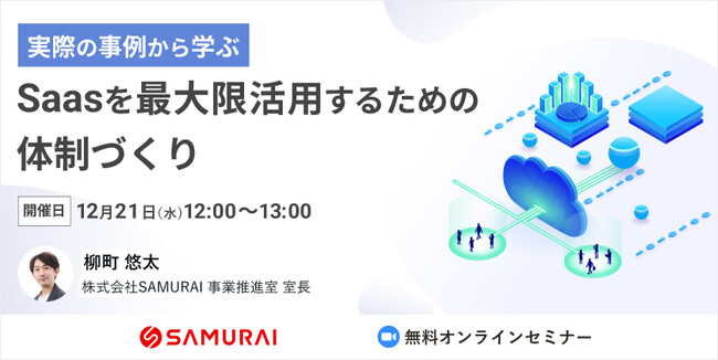 プログラミングスクール「SAMURAI ENGINEER」を運営する株式会社SAMURAI(本社所在地:東京都千代田区、代表取締役 :高比良 直人)は、DX推進オンラインセミナー「Saasを最大限活用するための体制づくり」を12月21日(水)12時より開催いたします。