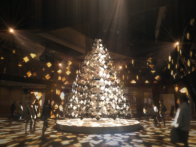 今年のウェストウォークには、冬の美しい煌めきをイメージしたクリスマスツリーが登場します。六本木ヒルズの冬を、反射と光の拡散を用いた煌びやかな空間で昼も夜も楽しめるように彩ります。