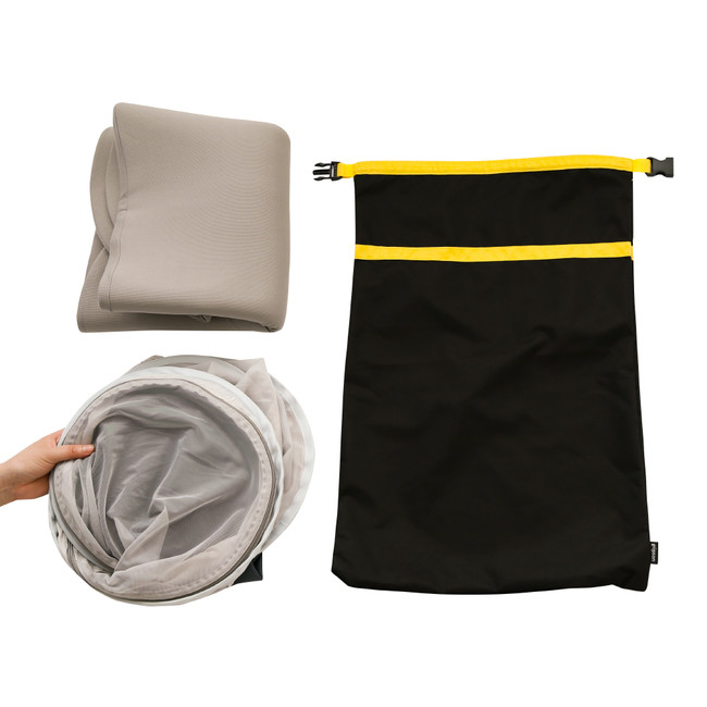 ●軽量コンパクトに折りたたみでき、避難時に持ち出しやすいリュック型収納袋付き