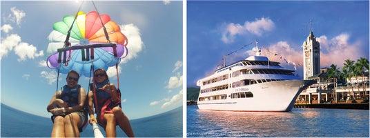 ハワイの美しい海とワイキキの景色を空から堪能するパラセイリング。最高高度150メートルから海を見下ろす非日常的な感覚をお楽しみください。