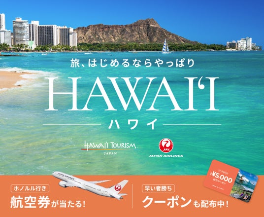 現地体験型アクティビティ専門予約サイト『ベルトラ』を運営するベルトラ株式会社(本社:東京都中央区、代表取締役社長:二木 渉)は、ハワイ州観光局 日本支局と日本航空協賛のもと、ハワイの魅力を伝える共同プロモーションを7月17日(水)より開始いたしました。特設サイト「旅、はじめるならやっぱりハワイ」の公開にあわせて、日本(成田・羽田)⇔ホノルルの往復航空券が抽選で当たるプレゼントキャンペーンを実施するほか、ハワイ・オアフ島でのツアーやアクティビティをお得に体験できるクーポンの配布やハワイのお土産が当たるSNSキャンペーンも実施いたします。