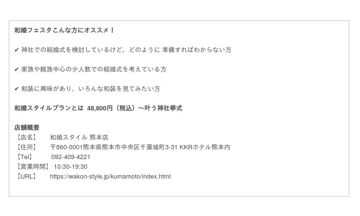 (※調査方法:インターネット調査提供: 2021年7月サイトイメージ調査:日本トレンドリサーチ)年間約1,300組の挙式をサポートを獲得し全国11エリア(仙台・埼玉・東京・横浜・名古屋・京都・大阪・奈良・兵庫・広島・福岡)に続き、熊本店のグランドオープンを記念し、4月3日(日)「KKRホテル熊本」にて、和婚おすすめコンテンツを取りそろえた「 和婚フェスタ in 熊本」を開催いたします。