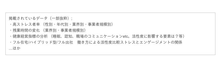 貴社の健康経営、組織づくりの一助となれば、大変幸いに存じます。