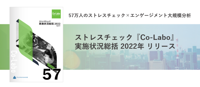 本資料は、ヒューマネージが提供するストレスチェック『Co-Labo』、及びエンゲージメント・サーベイ『Qraft』を2022年に実施した約57万人、さらに3年間の経年データを対象とした計187万人もの大規模な分析調査の結果を、計42ページにわたり掲載。企業の健康経営ご担当者様のお役に立てるよう、無料でダウンロードいただけます。