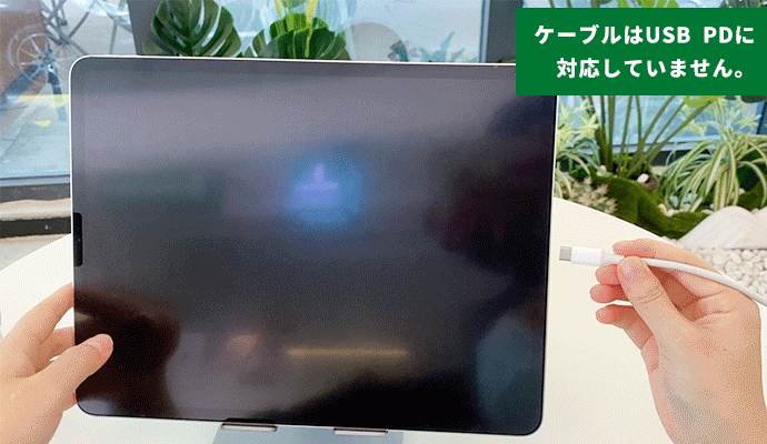 iPad Proを急速充電するには、通常であれば本体へUSB PDに対応しているケーブルを挿す必要がありますが、UGREEN USB-Cハブを経由してすることでUSB PDに対応していないケーブルでもiPad Proで急速充電が可能です。