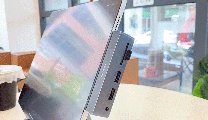 UGREEN USB-Cハブは、柔軟なスナップと着脱式のグリップデザインを採用しています。特別なL型設計でiPad Proにぴったりフィットし、緩みが生じません。