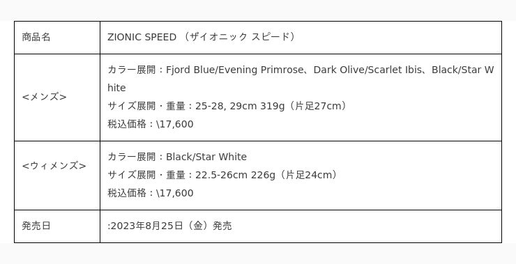 NEW <メンズ・ウィメンズ展開> ZIONIC SPEED(ザイオニック スピード) 8/25発売