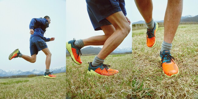 トレイルの過酷な環境にも耐えられるよう、メッシュアッパーは耐久性に優れたTPUオーバーレイで補強。