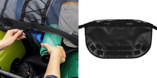 パックラフトの「バウ(船首)」につけるメッシュバッグ。