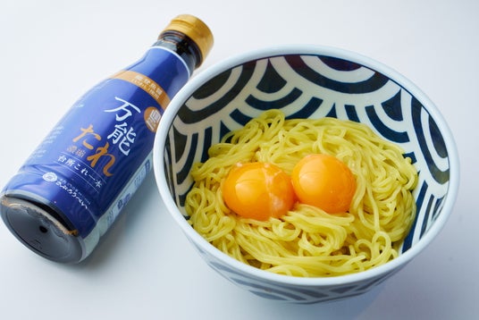 麺と卵の黄身だけという、シンプルなメニューだからこそ、美味しさが際立ちます。さぶろうべいの万能たれをかけてお召し上がりください。