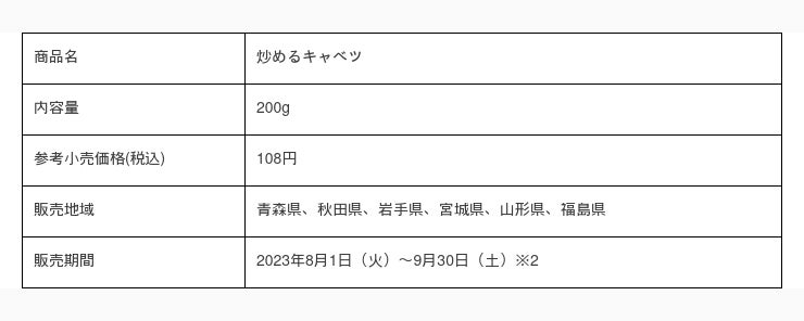 株式会社サラダクラブ(代表取締役社長:金子俊浩、本社:東京都調布市)は、2023年8月1日(火)~9月30日(土)までの期間限定で、岩手県のブランドキャベツ「いわて春みどり」を使用した「炒めるキャベツ」を東北エリア限定で発売します。