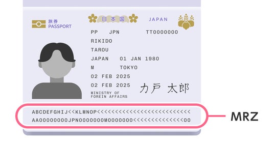 *3 MRZ(Machine Readable Zone):パスポートや運転免許証などの身分証明書の下部にある、専用スキャナー(当社プロダクトではスマートフォンの利用を想定)等で読み取り可能な領域。国際民間航空機関(ICAO)の第 9303 号文書に基づいて設計および生成されている。