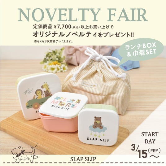 SLAPSLIPオリジナルのランチBOXと巾着背セット~オープンフェア内容~3月15日(金)~3/31(日)までの期間中、