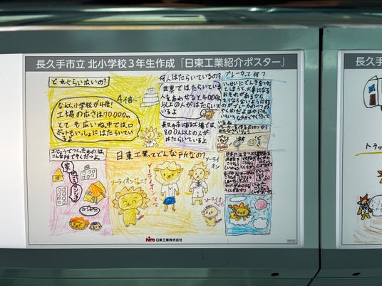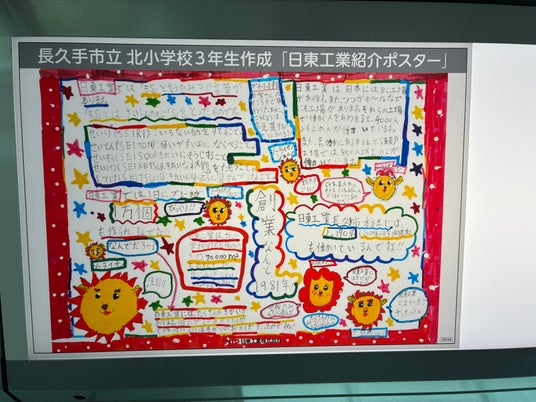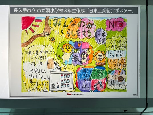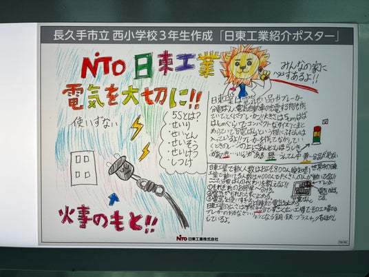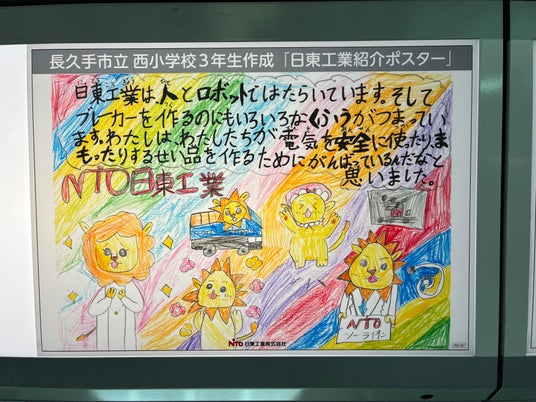 小学3年生が描いてくれた日東工業の紹介ポスター(一部)は以下にも掲載しています。