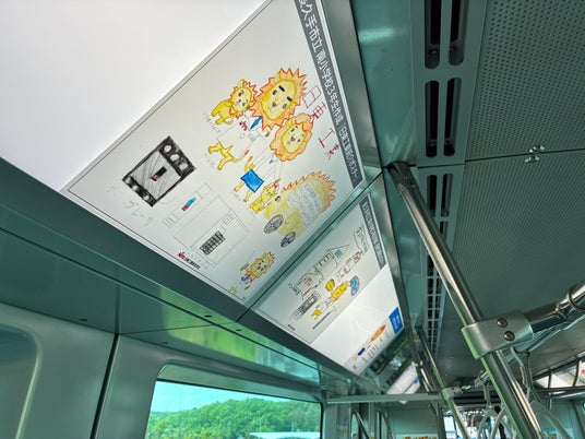 ■車両内に地元長久手市の小学生が描いた「2024年度日東工業紹介ポスター」48枚を掲示