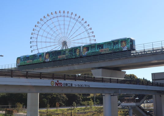 ■リニモラッピング車両「ソーライオン号」リニモは藤が丘駅(名古屋市)から八草駅(豊田市)までを結ぶ、日本唯一の磁気浮上式鉄道(リニアモーターカー)です。「ジブリパーク」へのアクセス路線として活躍しています。