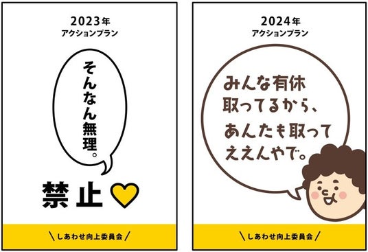 毎年アクションプランとして発表と実行を行い、職場環境の改善につなげています。そこで決定したアクションプランはPOPで全社に周知し従業員全員で取り組んでいます。