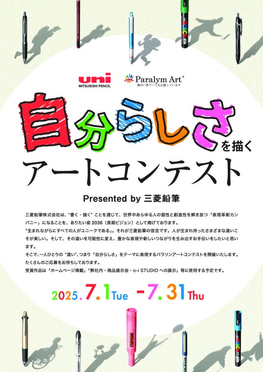 過去3回と同様に、三菱鉛筆株式会社(本社:東京都品川区 社長:数原滋彦)はオフィシャルパートナー契約を締結している一般社団法人 障がい者自立推進機構(所在地:東京都港区、代表理事:松永昭弘 以下、パラリンアート)と第4回アートコンテストを開催いたします。