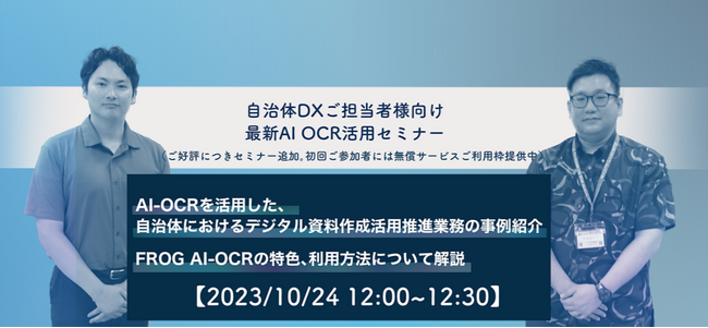 モルフォグループにおいてAIの事業化を担う、株式会社モルフォAIソリューションズ(所在地:東京都千代田区、代表取締役:神田武、以下 モルフォAIS)は、最新のAI-OCRを活用した自治体DX向けセミナーを2023年10月24日(火)12:00~12:30に開催します。