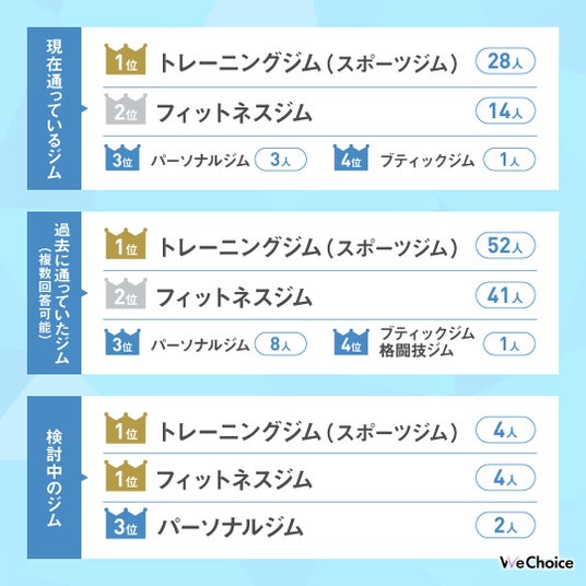 今回、「トレーニングジム」「フィットネスジム」に通っている方が多かったです。