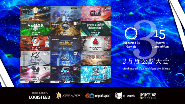 厳正なる審査の結果、以下の15団体様の大会をGameicの3月公認大会とし、協賛及び大会企画、運営、プロモーション、大会クリエイティブのサポートなどの包括的な大会支援を行わせていただきました。