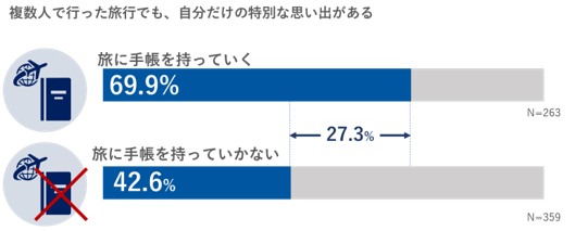 手帳ユーザーは旅の思い出を振り返る傾向がある。さらに1.6倍以上が、複数人の旅行でも自分だけの特別な思い出があると回答。
