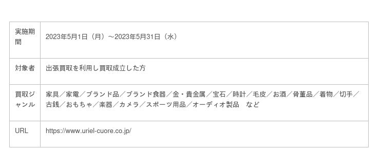 ※家電買取対象商品:https://www.uriel-cuore.co.jp/list/