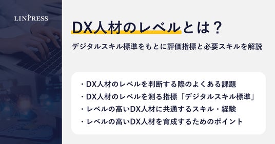企業向けDX人材育成研修を提供する株式会社リンプレス(本社:東京都港区、代表取締役社長:三宮壮、以下、リンプレス)は、DXに取り組む企業様に向けて、『DX人材のレベルとは?デジタルスキル標準をもとに評価指標と必要スキルを解説』と題した記事を公開しましたので、お知らせします。