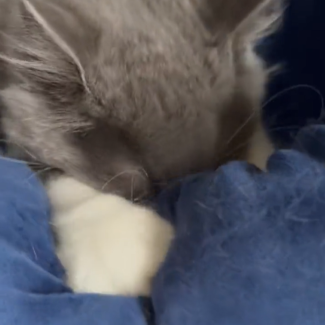 クッションの中でひっそりふみふみ。隠れていてもかわいい様子は見逃しません!