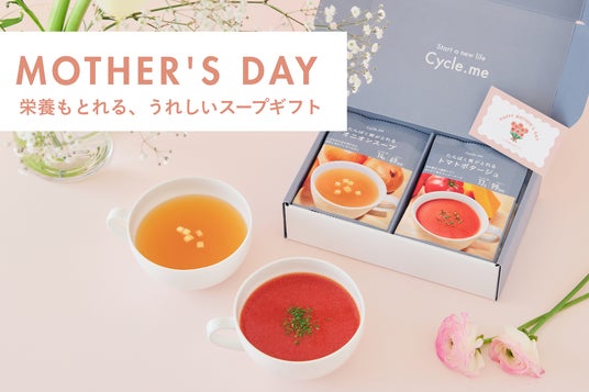 株式会社ドットミーが展開するCycle.me(サイクルミー)は、5月10日(日)の母の日に向けて、母の日限定カード付の「たんぱく質がとれるスープギフト」をLINEギフトおよび楽天市場にて発売しました。
