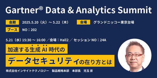 株式会社インサイトテクノロジー(本社所在地:東京都渋谷区、代表取締役社長 CEO:森田 俊哉、以下:インサイトテクノロジー)は、2025年5月20日(火)~22日(木)の3日間にわたって開催される「Gartner(R) Data & Analytics Summit2025」に出展、セッション登壇することをお知らせします。