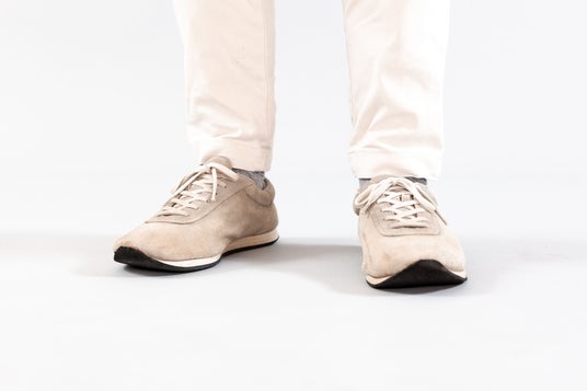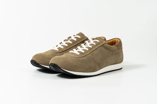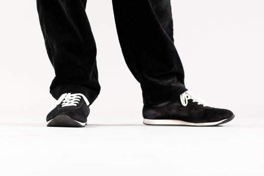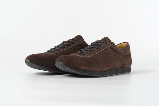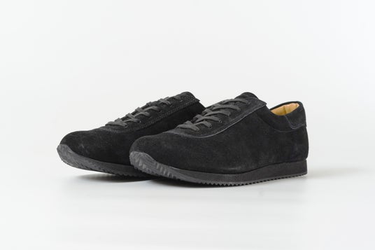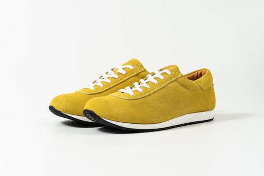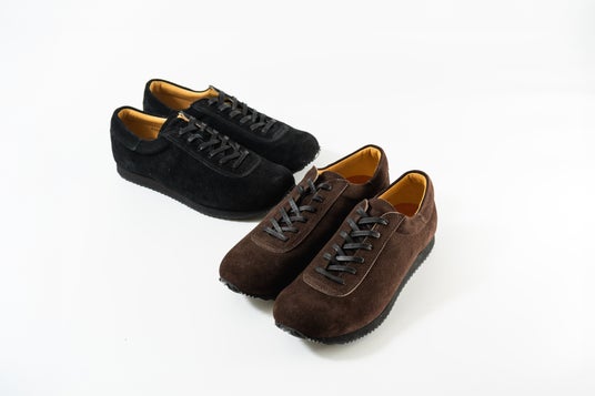 二つ目のテーマは「革靴スニーカー」。シューレースをワックス仕上げのブラックに、ライニングとインソールをキャメル、そしてソールをブラックにすることで、スエードの革靴のような佇まいの仕様となった。カラーは定番のブラックとダークトーンのブラウンが登場。これまで以上にスタイリングの幅を広げてくれる一足となっている。