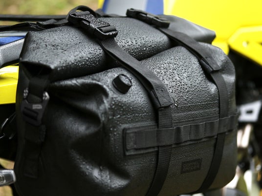 ライダーの天敵である突然の雨や、林道での泥汚れを気にせず使える、高い耐久性と防水性を備えたサイドバッグです。
