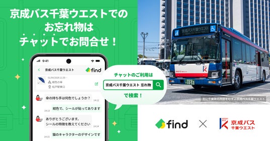 京成バス千葉ウエスト株式会社(本社:千葉県浦安市、代表取締役:藤本 剛弘、以下「京成バス千葉ウエスト」)は、株式会社find(本社:東京都港区、代表取締役CEO:高島 彬、以下「find」)が提供する「落とし物クラウドfind」を導入します。