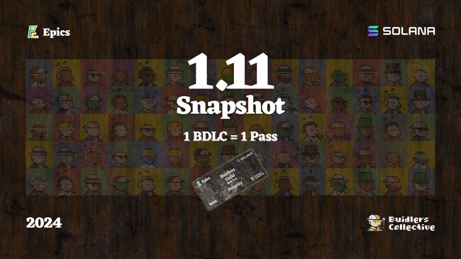 2024 年 1 月 11 日終了時点で Buidlers Collective NFT を所持しているホドラーは、NFT 所持数分の Epics プラットフォーム β プライオリティパスをミントできます。(1 BDLC = 1 Pass キャンペーン)