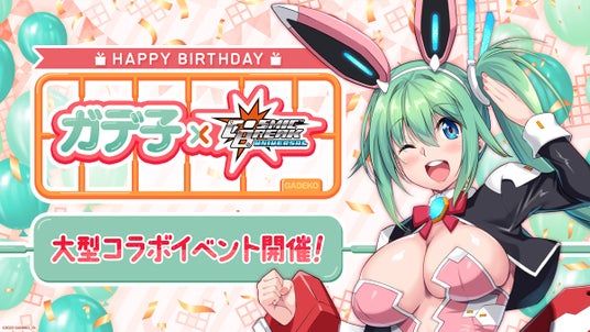 本コラボイベントでは、ガデ子の生誕祭イベント「ガデ子ドタバタ生誕祭」を開催するほか、「しのづかあつと(@sinozuka_atsuto)」氏デザインのコラボキャラクター「ガデ子CBst」(CV:佳穂成美)が登場します。