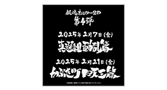 TVアニメ『銀魂』人気エピソードの再編集イベント上映『銀魂オンシアター』プロジェクト第4弾として、2025年2月7日より『銀魂オンシアター2D 真選組動乱篇』、2025年2月21日より『銀魂オンシアター2D かぶき町四天王篇』が劇場公開されることが決定!続報をお楽しみに!