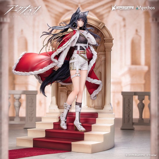 深紅のマントを纏った彼女が緋色の絨毯を踏みしめながらゆっくりと歩く姿を立体化しました。アーチに差し込む光は彼女のシルエットを美しく彩ります。風に揺らめく肩章のタッセルの細かな動きも忠実に再現。指先を飾るリングは黄金の輝きを放ち、大理石の階段と共鳴するように冷たい余韻を響かせます。長い髪をなびかせこちらを見つめる彼女の表情は、穏やかにも見えます。孤高の狼にだけ許された静けさがそこにあります。