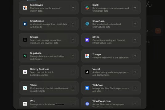 Claudeと連携可能なアプリの例。すでに100以上のアプリとの連携に対応している